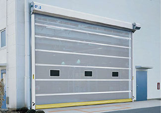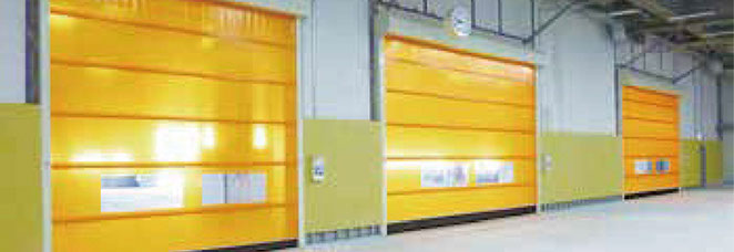 自動で高速開閉ができ、視認性が高いので閉じても反対の様子がよく見えます。採光性も良く照明費の節約など省エネにも効果的です。