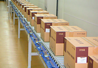 コンベヤラインから流れてくる搬送物を合流させるコンベヤ。複数ラインの合流にも対応しています。